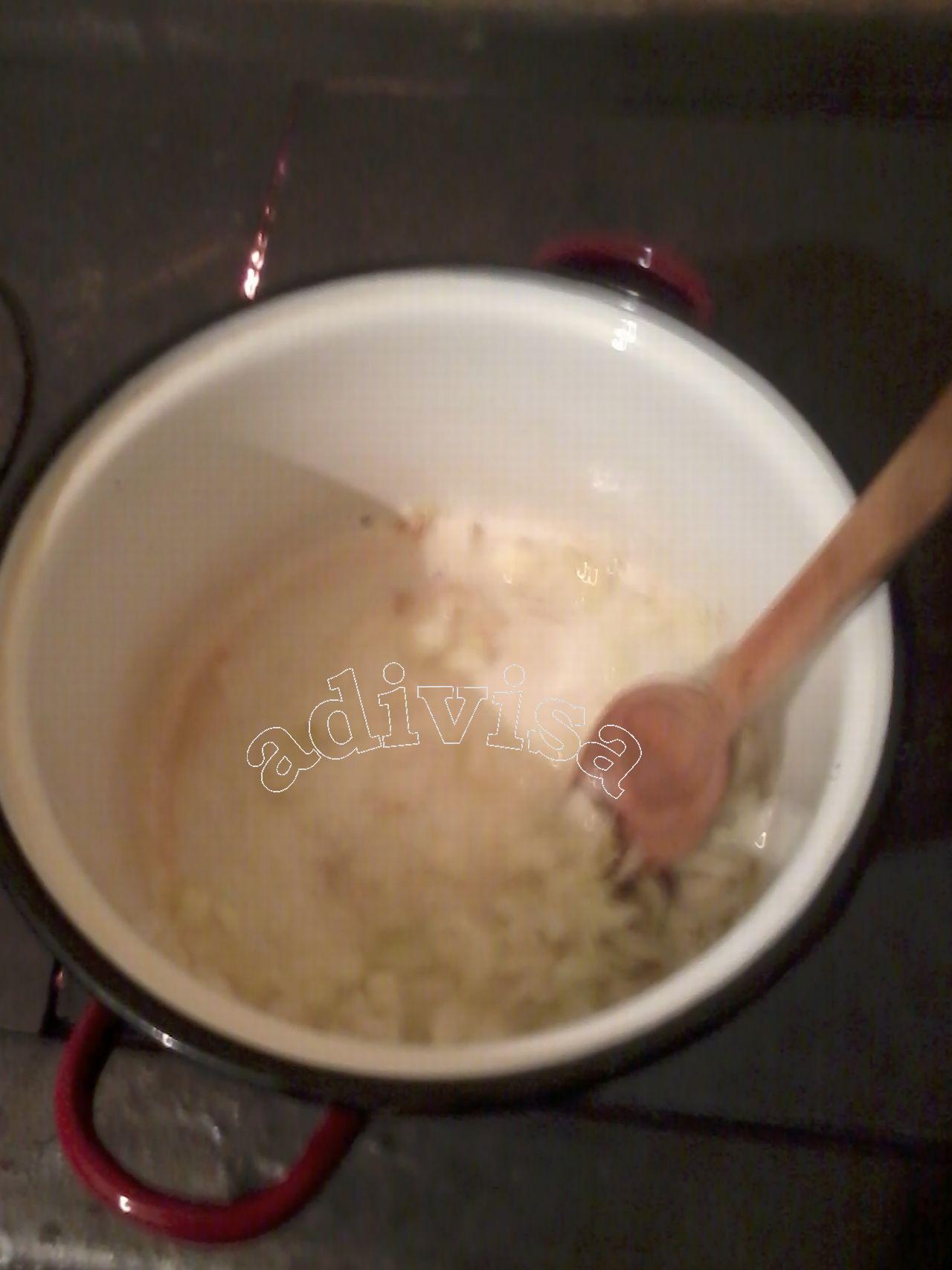 – Se pune ceapa in uleiul incins si se lasa la calit cateva minute, dupa care se pune putina apa sa se inmoaie ceapa.