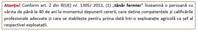 – Tânărul fermier în conformitate cu definiția prevăzută la art. 2 din R(UE) nr.1305/2013, care se instalează ca unic șef al exploatației agricole;